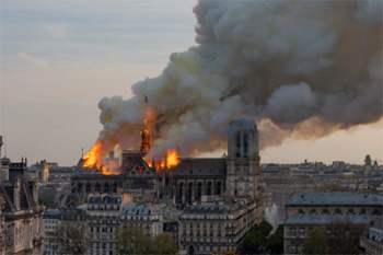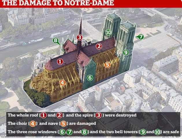 collapsed. Firefighters saved the bell towers. So also the rose windows.